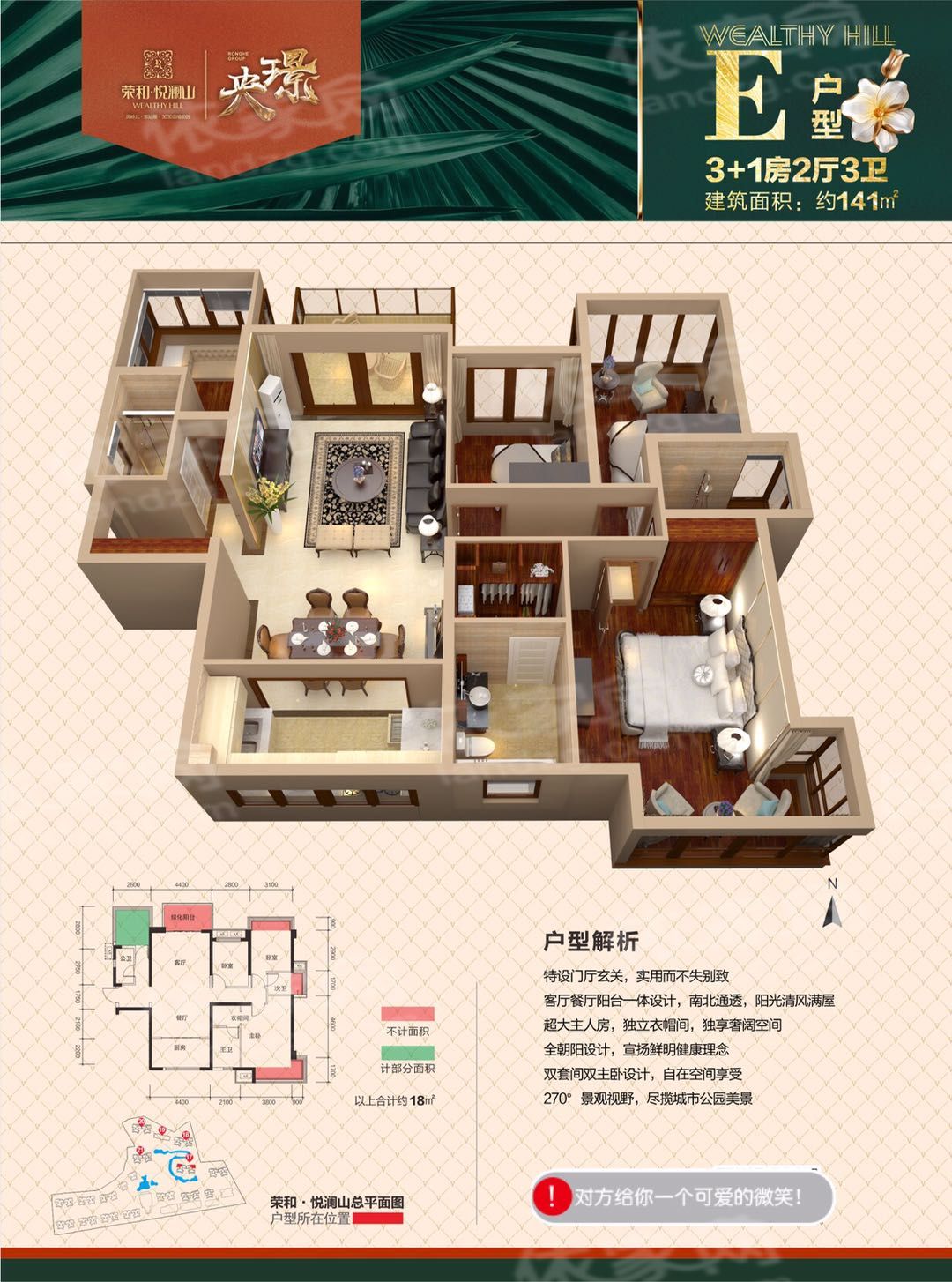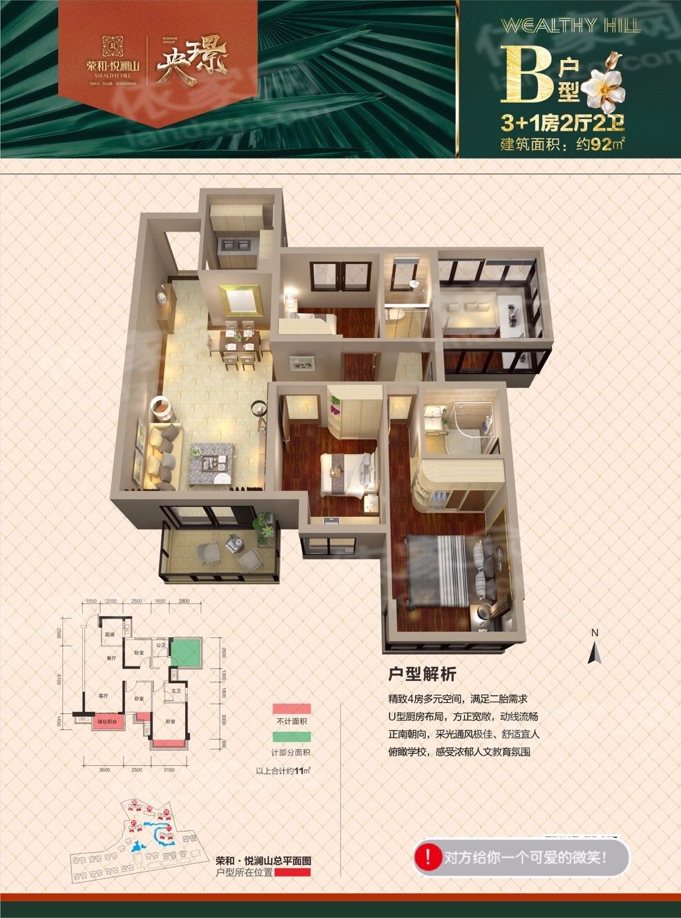 荣和悦澜山项目在青秀区长虹路5号,位于凤岭北CLD中央居住区。往东5分钟直达火车东站,西临近快速环道和厢竹大道,南为城市主干道长虹路,轨道交通3号线和规划7号线(在建),拥有园林,绿化率约39%。项目建筑风格是ART-DECO经典风格,拥有4栋独立楼栋商业体,提供休闲、美食、服务平台。项目计划引进北大博雅幼儿园 。