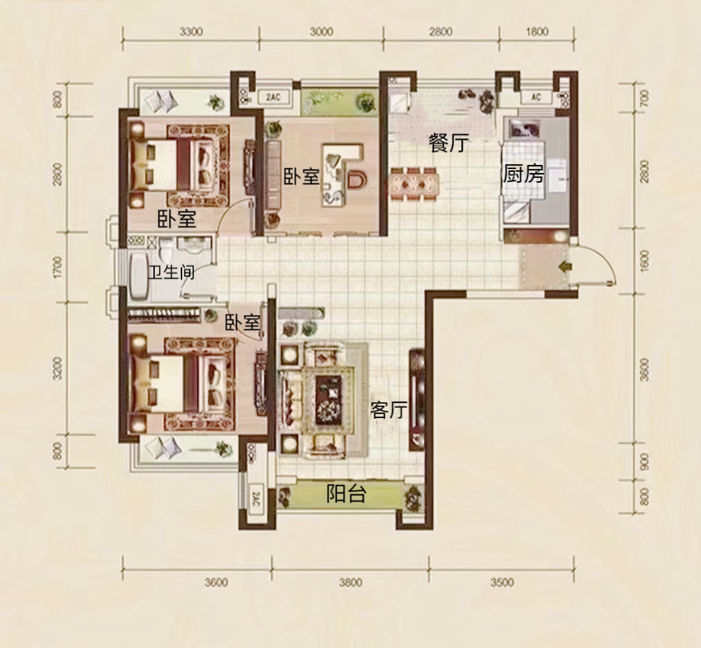 2800元/月 3室2厅